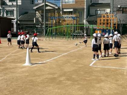 2月27日(月)2時間目、1年1組は体育でベースボール型のゲームをしていました。