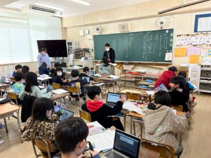 2月27日(月)2時間目、2年1組は国語で紹介する文章を書いていました。