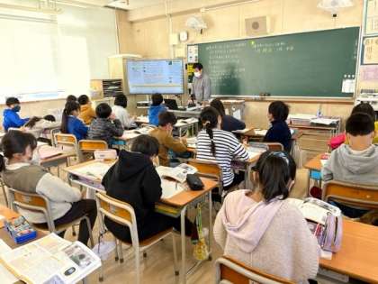 2月27日(月)2時間目、4年2組は社会科で豊中市に住む外国の人たちについて学習していました。