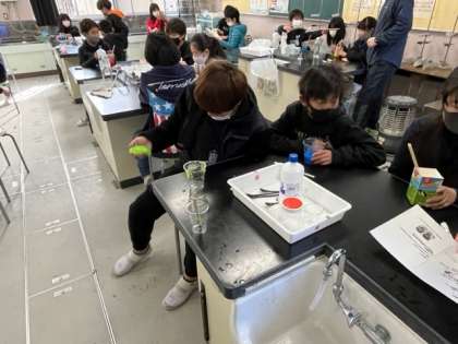 3月6日(月)1時間目、6年2組は理科で色のついたスライム作りをしていました。作ったスライムをさらにスーパーボールに作り替えていくようです。