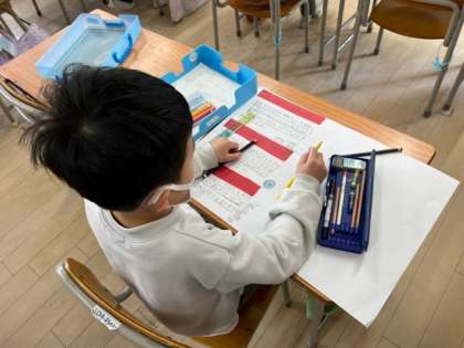 3月6日(月)5時間目、2年1組は生活科でできるようになったことをまとめていました。