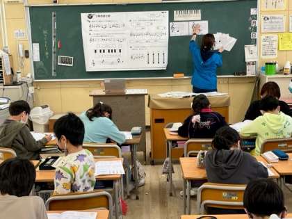 3月6日(月)5時間目、3年1組・2組とも音楽で「3年のまとめ」をしていました。