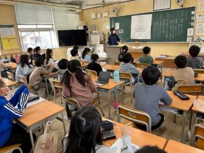 3月8日(水)朝の会で3年1組は完成した「粉浜商店街の歌」を見て、おもわず歌いだしていました。地元の商店街を誇りに思い盛り上げていこうとする子どもたちの気持ちをうれしく思いました。