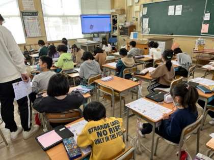 3月8日(水)3時間目、1年2組は算数のテストをしていました。