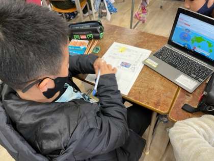 3月13日(月)1時間目、3年2組は国語で「外国のことをしょうかいしょう」を学習していました。調べたい国を決めてパソコンで調べて新聞にまとめていました。