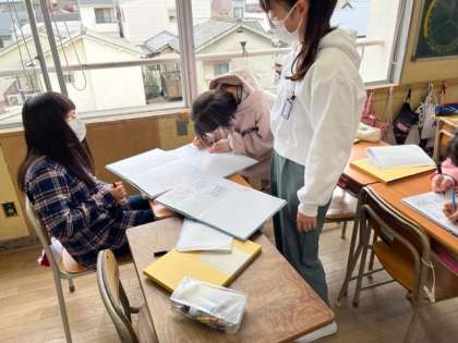 3月13日(月)1時間目、6年2組は卒業アルバムにお互いコメントを書き込んでいました。