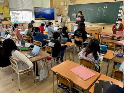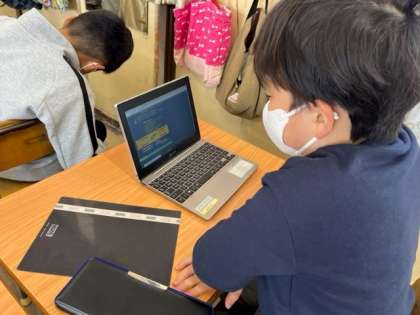 3月14日(火)1時間目、3年2組はパソコンのキーボード入力を練習する「キーボー島」というアプリの使い方を学習していました。