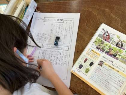 3月14日(火)2時間目、4年2組は社会科で学習したことのまとめとして新聞を作っていました。「和包丁と洋包丁のちがい」「歴史のあるぶどう作り」等の新聞名が見られました。