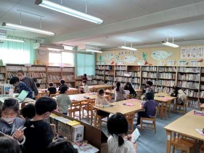 3月15日(水)1時間目、1年1組は図書の時間で読みたい本を探していました。
