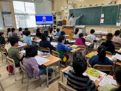 3月15日(水)1時間目、1年2組は音楽で「こいぬのマーチ」を階名で歌っていました。