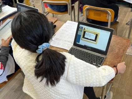 3月15日(水)1時間目、3年2組は算数プリントができた人から、パソコンでキーボー島等をしていました。