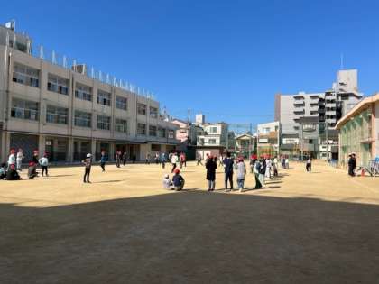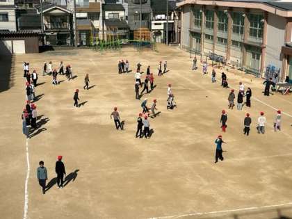 3月16日(木)1時間目、6年生は運動場で、粉浜小学校での時間を惜しむようにドッジボール等をしていました。