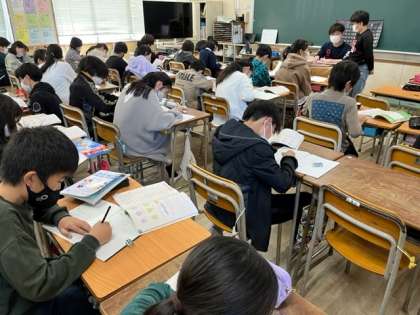3月16日(木)1時間目、5年1組は算数で「5年のまとめ」をしていました。