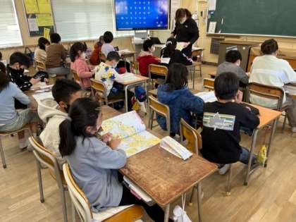 3月20日(月)2時間目、3年2組は社会科で地図帳を使って学習していました。ちょうど九州の各県のことを調べていました。