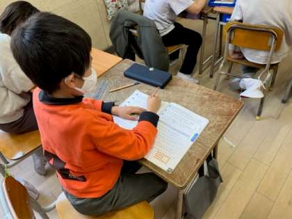 3月20日(月)4時間目、2年1組は算数で「算数マイトライ」をしていました。
