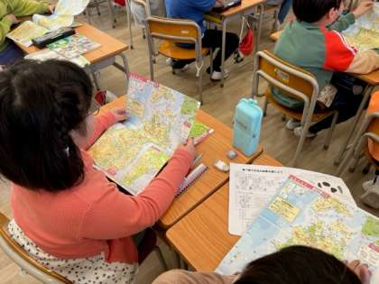 3月20日(月)4時間目、3年1組は社会科で地図帳を使って、地図帳の見方の学習をしていました。