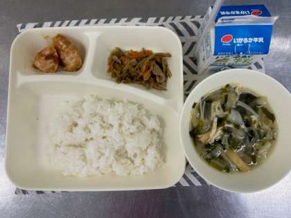 今年度最後の給食でした。1年生は入学した頃と比べて食べる量が増えて、苦手なものも少しずつ食べられるようになりましたね。