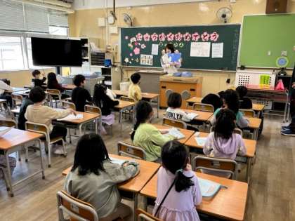 4月10日(月)2時間目、1年1組は学級活動で、連絡帳について先生から話を聞いていました。