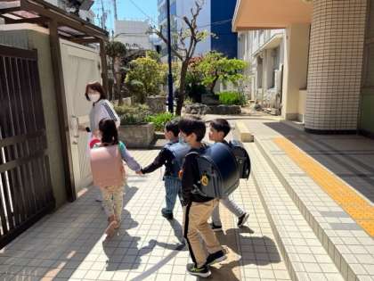 4月10日(月)1年生は4つのコースに分かれて下校していきました。