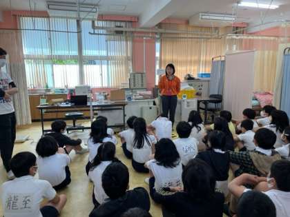 4月11日(火)2時間目、6年1組は二測定で保健室にいました。今年の健康目標について、話を聞いていました。