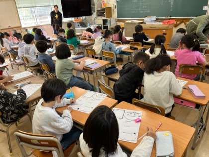 4月11日(火)2年2組は学級活動で自己紹介カードを書いていました。