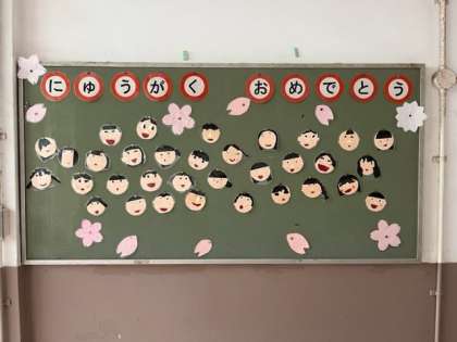 4月12日(水)1年生階段の掲示板にかわいらしい顔がたくさんありました。