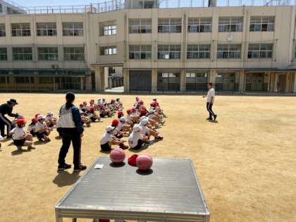 4月13日(木)4時間目、4年生は体育でおにごっこで体をあたためた後ドッジボールをしていたようです。