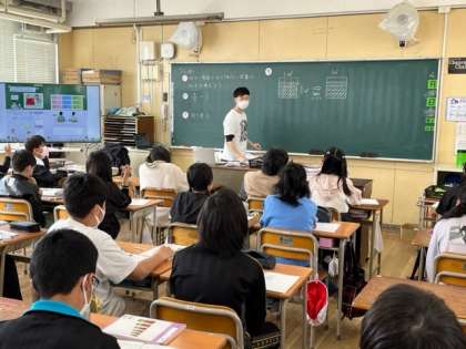 4月14日(金)2時間目、6年1組は算数で分子÷整数でわりきれない計算の仕方を考えていました。