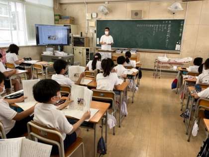 4月14日(金)2時間目、4年2組は国語で「こわれた千の楽器」を学習していました。