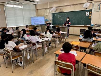 4月14日(金)2時間目、4年1組は算数で数直線のめもりをよんだり大きい数を比べたりしていました。