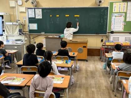 4月20日(木)1時間目、1年1組は算数で「10までの かず」を学習していました。今日は5までの数を絵とブロックと数字を対応させて、数字の読み方を学習していました。