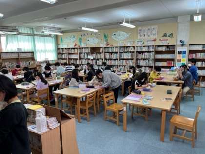 4月21日(金)1時間目、6年2組は図書の時間で静かに本を読んでいました。