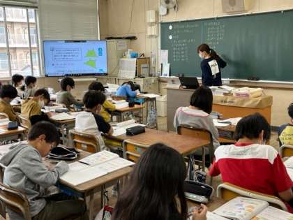4月25日(火)1時間目、5年2組は算数で合同な図形の重なり合う頂点、辺、角について調べていました。