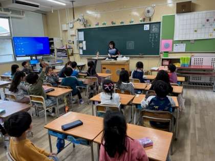 4月26日(水)2時間目、1年2組は国語で、ひらがなの「お」を学習していました。「お」のつく言葉で「おしくらまんじゅう」を言った子がいたので、おしくらまんじゅうを調べていました。「おしくらまんじゅう、押されて泣くな」と歌っている子もいました。