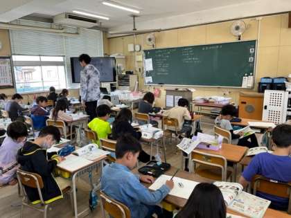 4月27日(木)1時間目、3年2組は理科で、「生き物をさがそう」のまとめをしていました。