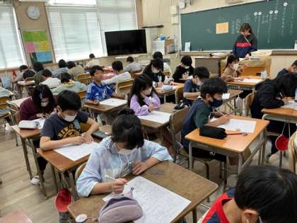 4月28日(金)1時間目、5年2組は社会科でテストをしていました。