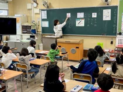 5月8日(月)1時間目、1年1組は国語でひらがなの「ん」を学習していました。