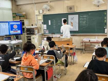 5月8日(月)1時間目、4年2組は書写で「羊」を練習していました。