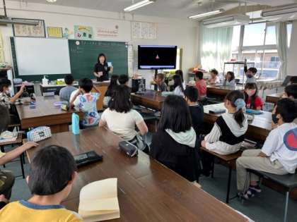 5月10日(水)1時間目、4年1組は音楽で鑑賞の学習をしていました。男声と女声を聴き分けて、男の子が男声のところを、女の子が女声のところを歌っていました。