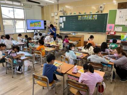 5月11日(木)1時間目、1年2組は算数で「なんばんめ」を学習していました。