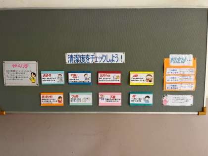 5月15日(月)保健室前の掲示板が先週から「清潔度をチェックしよう!」に替わっています。