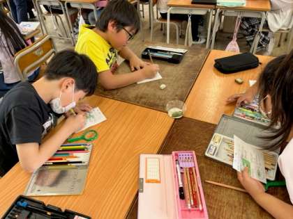 5月15日(月)2時間目、3年1組は総合で「かいこ」を観察してかいていました。