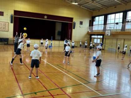 5月19日(金)3時間目、4年1組は体育館でソフトバレーボールの練習をしていました。