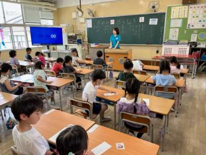 5月22日(月)3時間目、1年1組は国語でひらがなの「も」と「の」を学習していました。その後日直カードを作っていました。