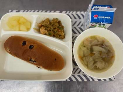今日の給食は、カレールウの素やクリームなどを使った「カレードリア」でした。