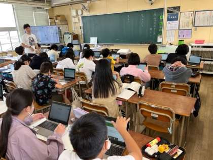 6月1日(木)1時間目、6年1組は国語で「防災ポスターを作ろう」を学習していました。防災ポスターを作るために、防災や災害についてパソコンを使って調べていました。