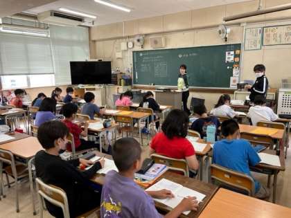 6月1日(木)1時間目、4年1組は折れ線グラフと表のまとめをしていました。