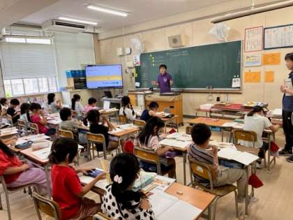 6月5日(月)4時間目、2年1組は算数で「長さ」の学習をしていました。30cmものさしの目盛りの読み方を学習していました。