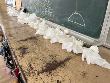 6月7日(水)5時間目、6年2組は家庭科でエプロンを作っていました。ふと教室の後ろを見ますと、40個以上のてるてるぼうずがありました。明日からの修学旅行に対する思いが伝わってきました。