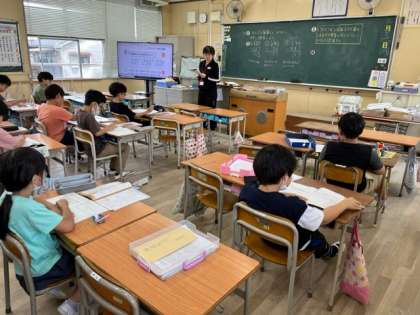 6月12日(月)2時間目、3年生は算数で習熟度別に3学級に分かれて学習していました。筆算の仕方を考えていました。